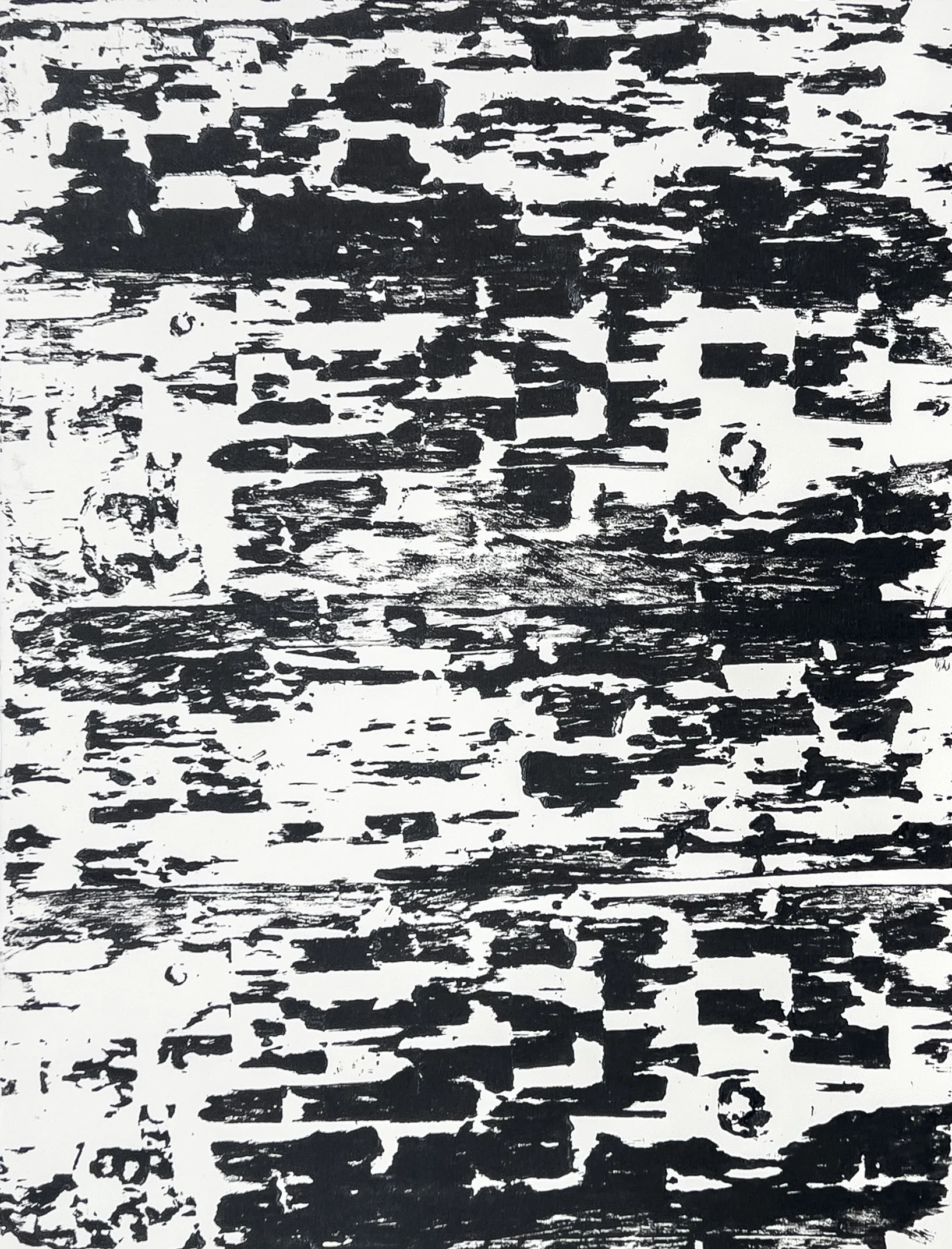 This work records those impressions as material artifacts of the forestry process, translating the interface between natural growth patterns and mechanized extraction into a field of textured marks. By inking the log’s surface and transferring the relief directly onto paper or canvas, Crowle preserves both the anatomy of the tree and the standardized imprint of industrial machinery. The works position these surfaces as documents of a larger extractive choreography—where organic form and industry converge.